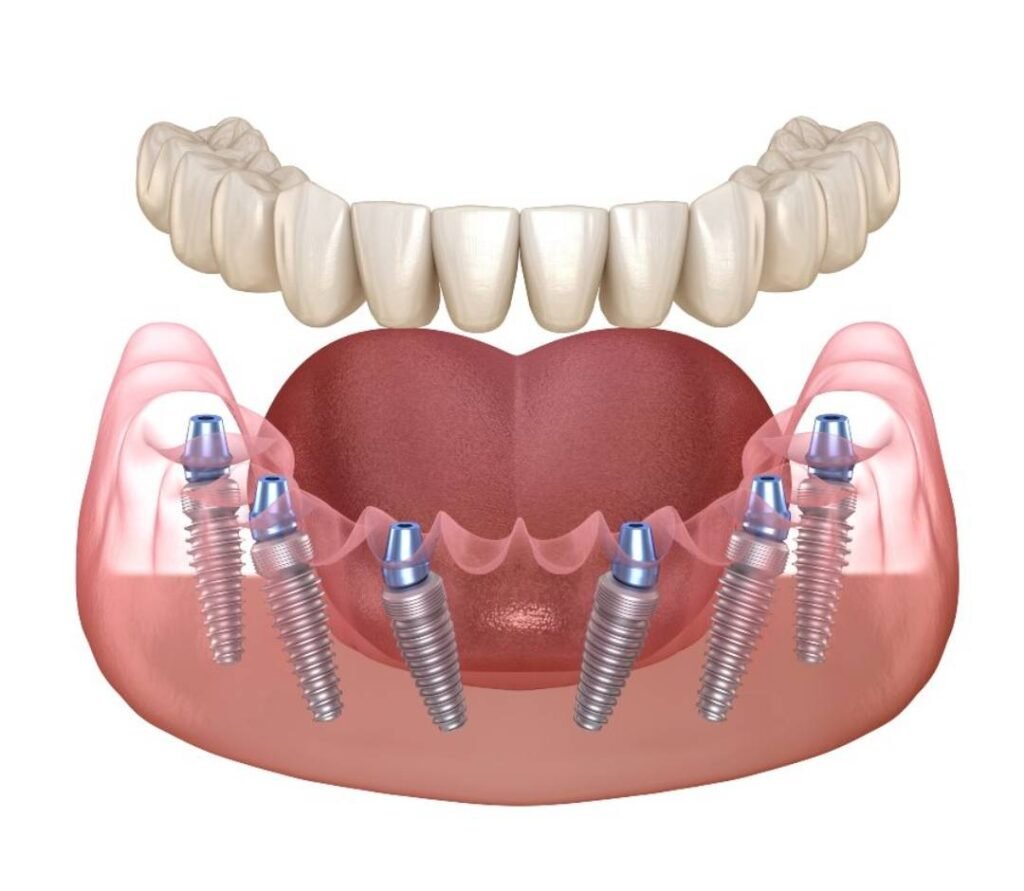 Reabilitare Totală – Dantură fixă 24h (include manoperă chirurgicală, 6 implanturi, 6 bonturi protetice și lucrarea provizorie fixată prin înșurubare)