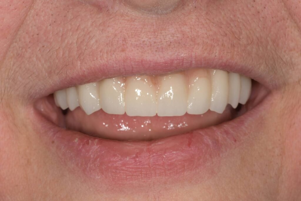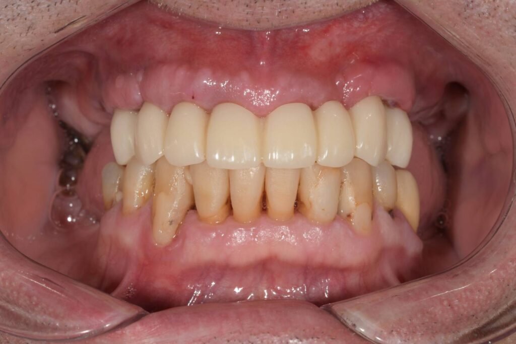 Rezultatul obținut este reabilitarea completă și estetică a arcadei superioare printr-o lucrare protetică fixă, cu aspect natural și integrată perfect în fizionomia pacientului. Noul set de dinți este stabil, funcțional și oferă o capacitate optimă de masticație. Pacientul beneficiază acum de confortul unei danturi fixe, estetică îmbunătățită și, implicit, de o creștere semnificativă a încrederii în sine și a calității vieții.